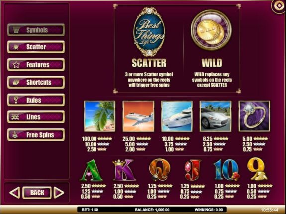 Best Things in Life slot suggests excellent things through its name, and once you start playing, you’ll quickly confirm this for yourself. The best cars, jewellery, and luxurious yachts, planes and much more will grace your screen on a background surrounded by shiny rims and diamonds.